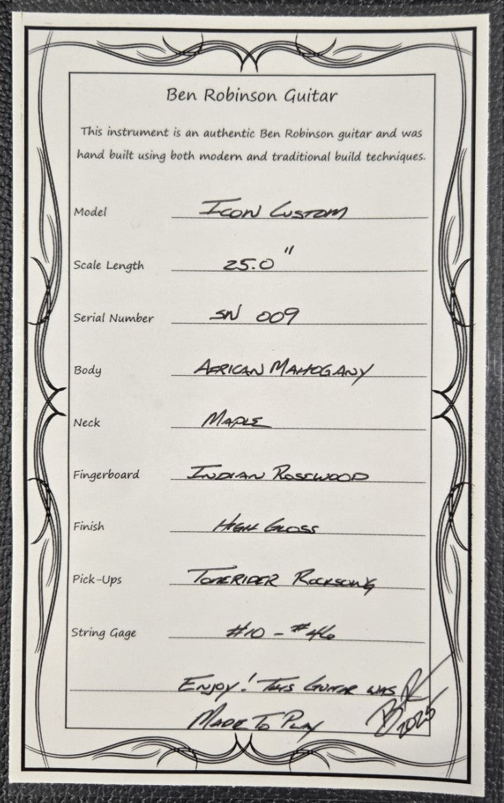 If you love my ICON guitar but you have to have humbuckers with dual volume and dual tone controls, this is the guitar for you! Tonerider Rocksong Pickups give a great vintage / modern mix that is just fantastic. Add in push pull coil split on the tone knobs and you have near infinite tone options. The neck is a fast playing C with some D flair on the fretboard that allows me to roll over the edges giving a great feel and playability. You just have to check this one out - great player and huge tone.